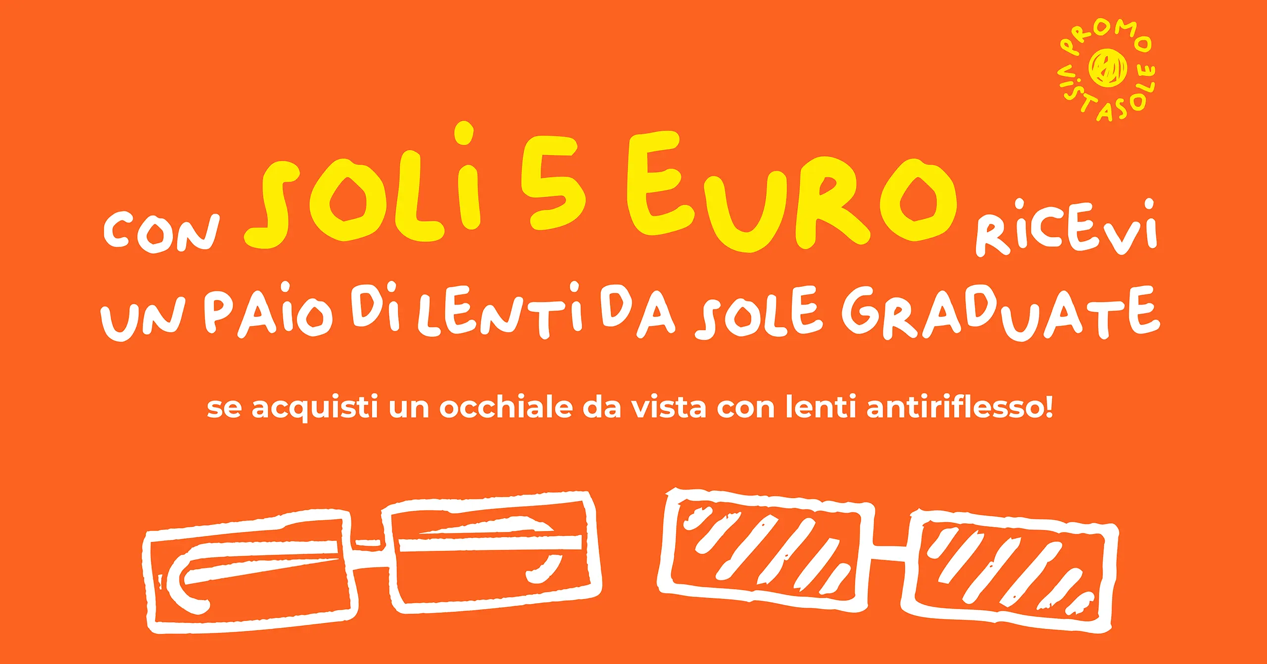 Regalati un nuovo paio di lenti da sole graduate a 5 euro con la promo Vista-Sole! Basta acquistare un occhiale da vista con lenti antiriflesso in uno dei nostri centri…